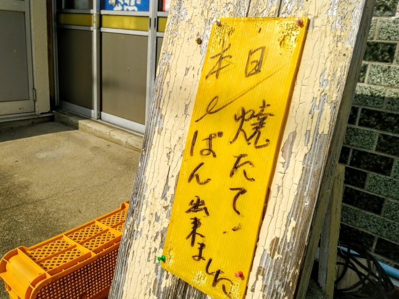 店舗には看板はないので迷うが、ほのかに漂う焼きたてのパンの香、軒先に「本日は焼たて、ぱん出来ました」の目印で分かった。