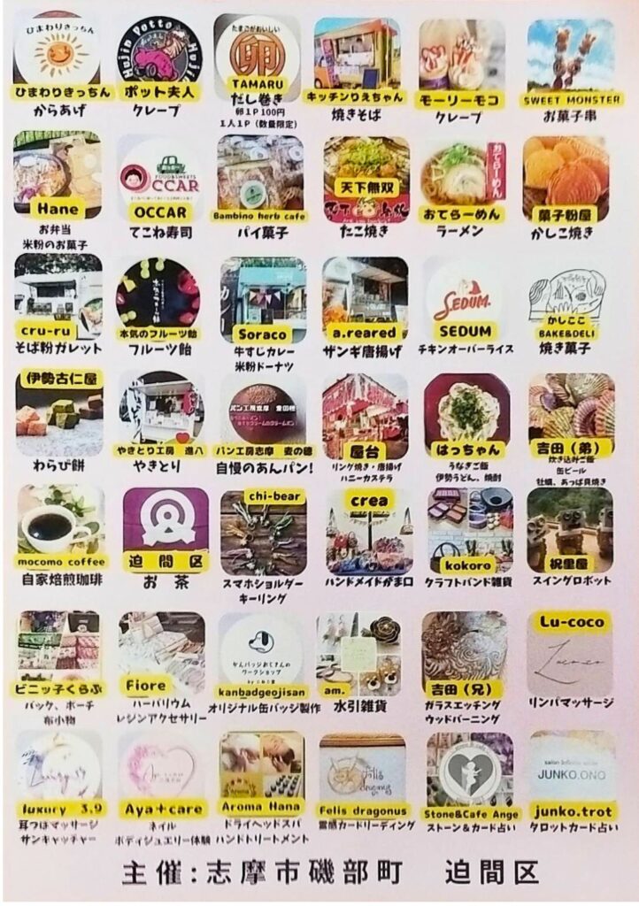 - 体験・雑貨: オリジナル缶バッジ製作やハンドメイドアクセサリー、さらにはリンパマッサージや占いなど、大人もゆったり楽しめるブースが充実しています。