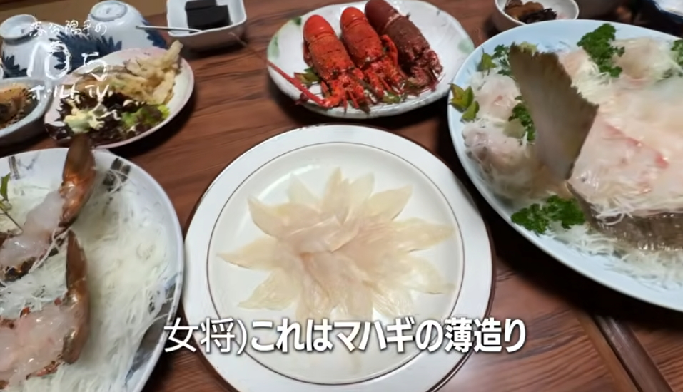 『10万ボルトTV』の撮影クルーが宿泊した際、その食卓に並んだのは、まさに「海鮮の宝石箱」だった。主役の伊勢エビをはじめ、マハタやカツオの刺身、さらには三重の郷土料理である「てこね寿司」まで、15品にも及ぶ豪華な品々が並ぶ。