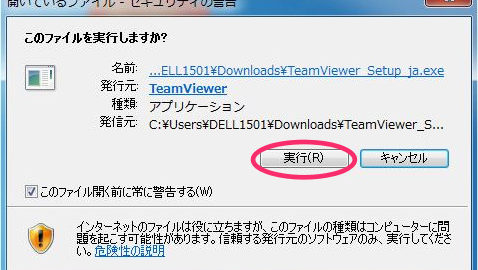 では本題。ダウンロードしたファイル「 TeamViewer_Setup_ja.exe」を…
